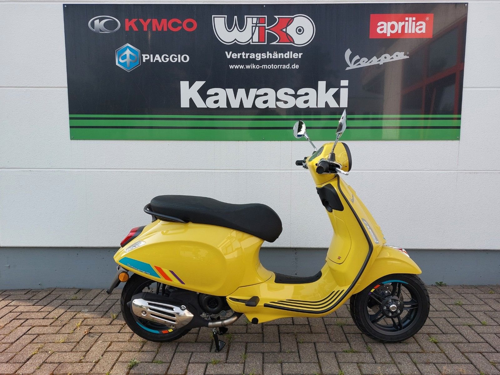 Unsere Marken: Kawasaki, Aprilia, Vespa, Piaggio und Kymco.